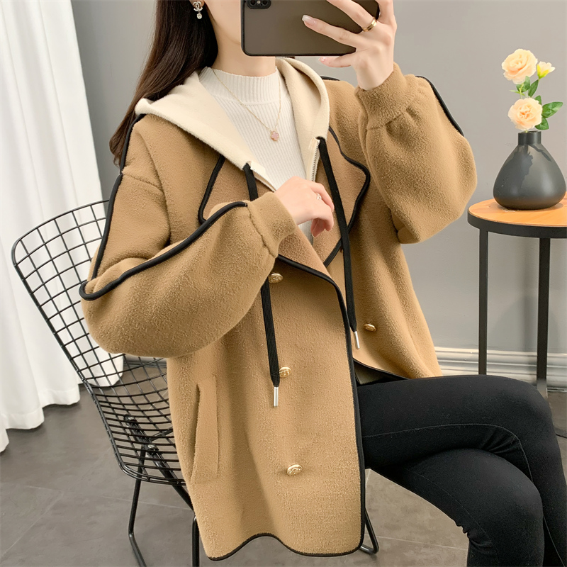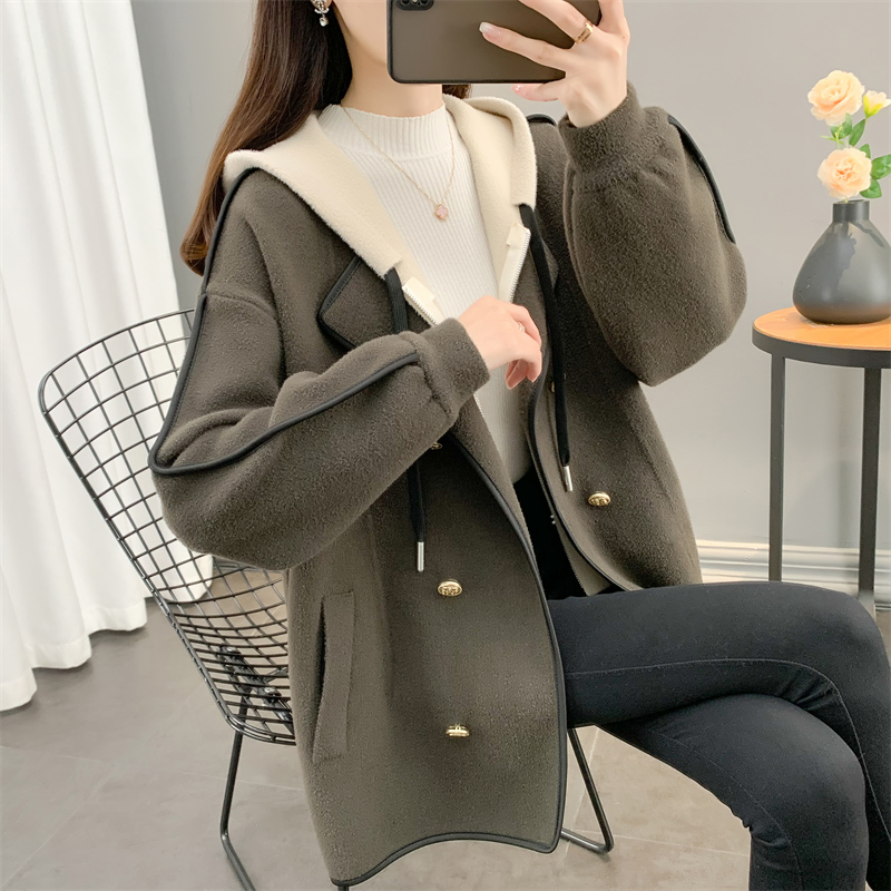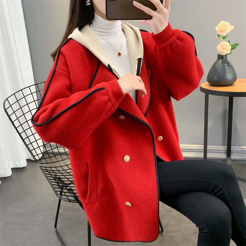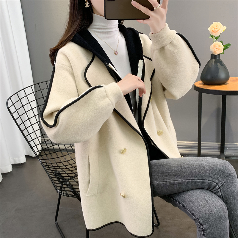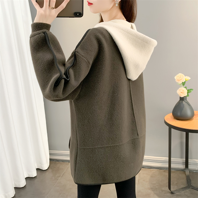 Трикотажное шерстяное пальто, модная куртка, демисезонный комплект с капюшоном, костюм, кардиган, средней длины
